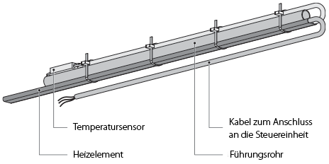 Das Elektro-Heizregister wird gemäß Betriebsanleitung im Lüftungsrohr der Anlage montiert. |