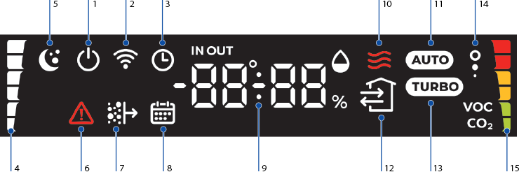 BETRIEBSARTEN Wärmerückgewinnungsbetrieb: Durch eine Kernlochbohrung in der Außenwand wird gleichzeitig Luft zu- und abgeführt. Das Folienheizregister und der Frostschutz-Algorithmus werden durch Temperatursensoren aktiviert. Zuluftbetrieb: Nur der Zuluftventilator ist aktiv. Eine Aktivierung des Folienheizregisters ist möglich. Abluftbetrieb: Nur der Zuluftventilators ist aktiv. Eine Aktivierung des Folienheizregisters ist nicht möglich. |