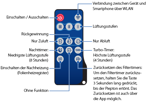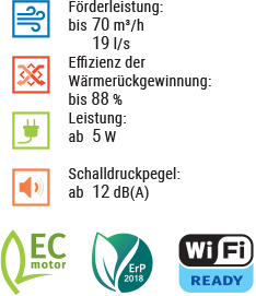 Steuerung der Lüftung über Cloud-Server von überall auf der Welt Anschluss an Smart Home oder ein Gebäudeleitsystem über WLAN |