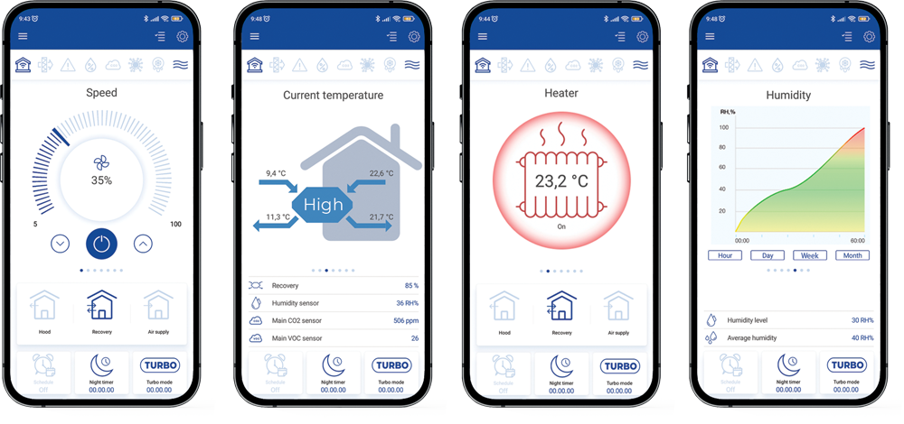Die Lüftungsanlage wird über die Blauberg Home App auf einem Smartphone oder Tablet gesteuert. Die Lüftungsanlagen können über WLAN verbunden werden. |