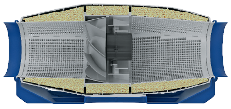 Das Gehäuse besteht aus hochwertigem, langlebigem Kunststoff mit einer 50 mm dicken Schall- und Wärmedämmung aus Mineralwolle.Die Speziallochung und die Mineralwolleschicht sorgen für Schalldämmung über einen weiten Frequenzbereich.Halbaxiales Laufrad aus hochwertigem Kunststoff.Der Diffusor, das speziell konstruierte Laufrad und der Gleichrichter gewährleisten eine gleichmäßige Luftströmungsverteilung und vereinen eine hohe Luftförderleistung und hohen Druck bei niedrigem Geräuschpegel.Das Ventilatorgehäuse ist mit einem luftdichten Klemmenkasten für den Anschluss an das Stromnetz ausgestattet.Am Ventilatorgehäuse befi ndet sich eine Halterung für die Boden-, Wand- oder Deckenmontage. |