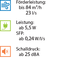 Warmluft-Umlauf Sets. Förderleistung bis 84 m3/h.