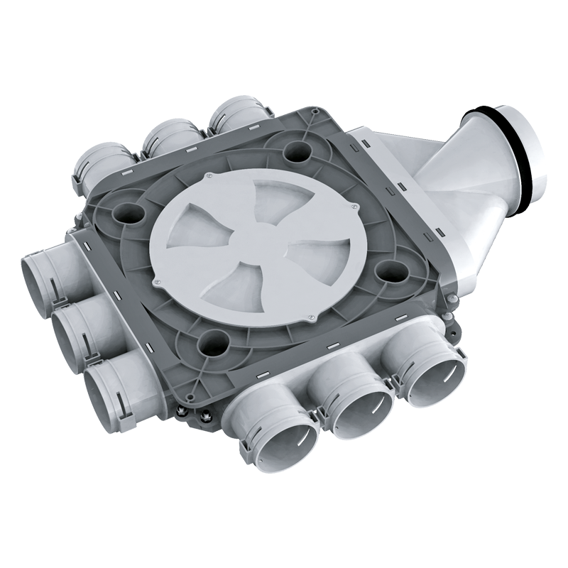 Für Zu- und Abluftsysteme in Wohngebäuden. Zur Verteilung der Luft von der Lüftungsanlage zu den Luftleitungen.