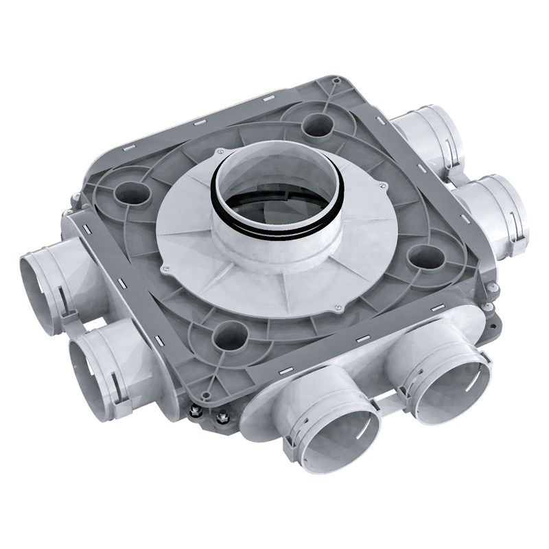 Für Zu- und Abluftsysteme in Wohngebäuden. Zur Verteilung der Luft von der Lüftungsanlage zu den Luftleitungen.