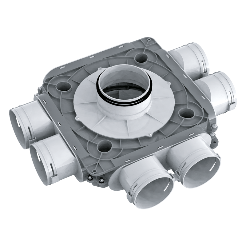 Für Zu- und Abluftsysteme in Wohngebäuden. Zur Verteilung der Luft von der Lüftungsanlage zu den Luftleitungen.