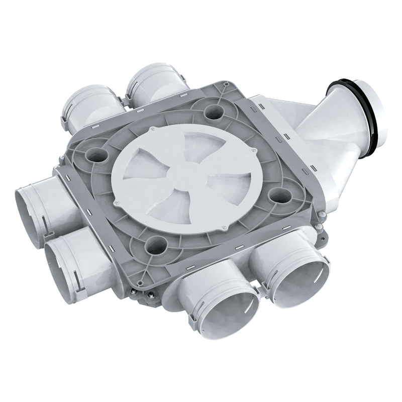 Für Zu- und Abluftsysteme in Wohngebäuden. Zur Verteilung der Luft von der Lüftungsanlage zu den Luftleitungen.