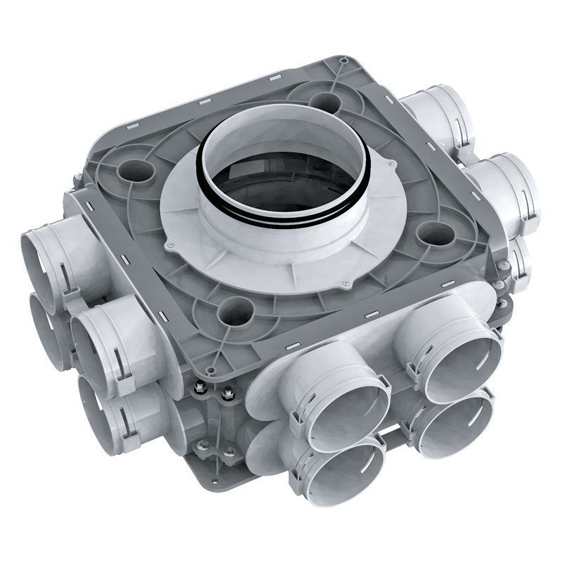 Für Zu- und Abluftsysteme in Wohngebäuden. Zur Verteilung der Luft von der Lüftungsanlage zu den Luftleitungen.