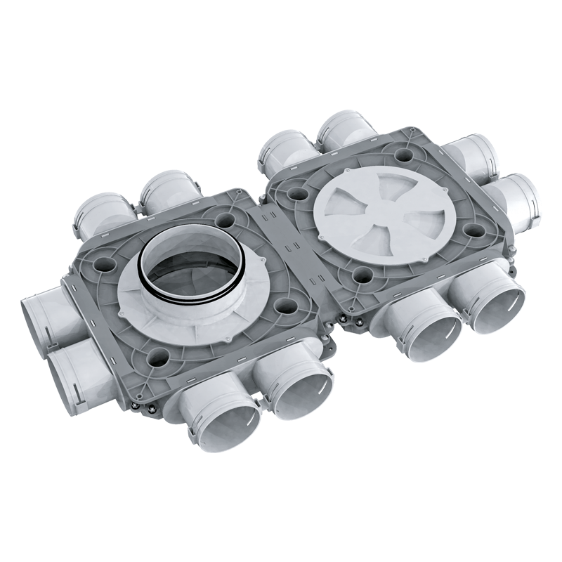 Für Zu- und Abluftsysteme in Wohngebäuden. Zur Verteilung der Luft von der Lüftungsanlage zu den Luftleitungen.