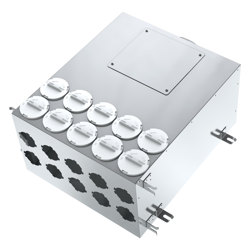 Für Zu- und Abluftsysteme in Wohngebäuden. Zur Verteilung der Luft von der Lüftungsanlage zu den Luftleitungen.