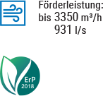 Diagonal-Rohrventilatoren. Maximale Förderleistung bis zu 3350 m³/h.