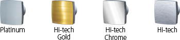 Wand- oder Deckenmontage. Einfache Wartung. Dauerbetrieb. Rückschlagklappe. Kugellagermotor. Design: Metallic (Quatro C Platinum), Aluminium (Quatro C Hi-tech), Chrom (Quatro C Hi-tech Chrome), Gold (Quatro C Hi-tech Gold). 5 Jahre Garantie. VARIANTEN