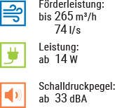 Abluftventilatoren. Maximale Förderleistung bis 265 m³/h.