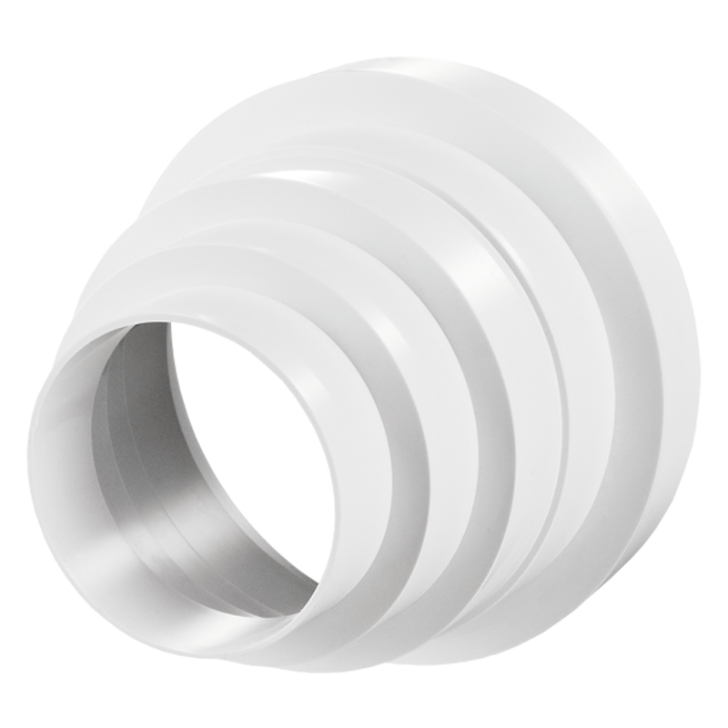 Für die Verbindung von runden Rohren mit verschiedenen Durchmessern RR.Material: Kunststoff, weiß.
