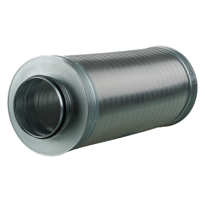 Verminderung des Geräusches von Lüftungsanlagen, die sich über die Luftleitungen der Anlagen ausbreitet.Werden zusammen mit geräuschisolierten Ventilatoren in Gebäuden mit hohen Anforderungen an Lärmschutz verwendet, wo viel Geräusch durch das Lüftungssystem produziert wird.Kompatibel mit Lüftungsrohren mit einem Durchmesser von 100 bis zu 315 mm. AUFBAU Das Gehäuse besteht aus einem äußeren und einem inneren flexiblen Spiralrohr aus einer Aluminiumlegierung, gefüllt mit einem nicht brennbaren schalldämpfenden Material. Die innere Oberfläche ist perforiert und mit einer Schutzschicht überdeckt, die das Ausblasen der Faser verhindert.Breites Sortiment von Typengrößen mit mehreren Längenvarianten. |