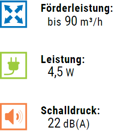 Zweistufiger Ventilator mit einer Förderleistung bis 90 m³/h.