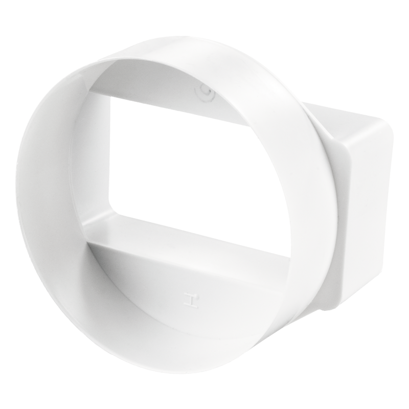 Verbindung von Flachkanälen mit Lüftungsrohren. Material: Kunststoff, weiß. BlauPlast US 100/110×55: Direkter Anschluss an Flachkanäle und Lüftungsrohre. BlauPlast USV 100/110×55: Direkter Anschluss an Flachkanäle und Anschluss über einen Rundrohrverbinder für Lüftungsrohre. |