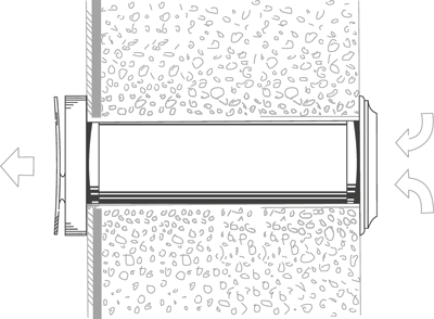 Außenwandmontage Sorgt für gleichmäßige Luftzufuhr Eingebauter G3 Filter Manuelle Regelung des effektiven Querschnitts Einfache Wartung Teleskop