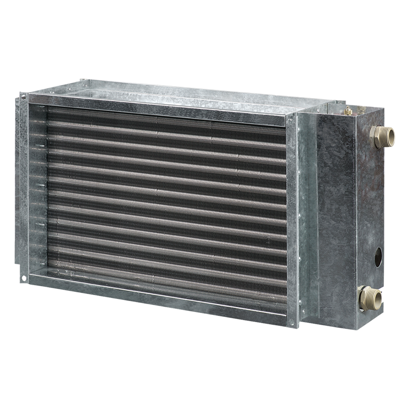 Erwärmung der Zuluft in Lüftungssystemen für verschiedene Räume.Geeignet für den Einbau in Zuluft- oder Lüftungsanlagen für die Erwärmung des Zuluftstromes.Montage nur in Innenräumen, wenn Wasser als Wärmeträger verwendet wird.Bei Anwendung im Außenbereich muss ein Frostschutzgemisch verwendet werden (z.B. Äthylenglykolmischung).Kompatibel mit Luftkanälen mit einem Querschnitt von 400×200 bis zu 1000×500 mm. AUFBAU Gehäuse aus verzinktem Stahl. Röhrenkollektoren aus Kupfer.Wärmetauscheroberfläche aus Aluminiumplatten.Am Austrittskollektor ist ein Stutzen für die Montage eines Tauchtemperaturfühlers oder eines Vereisungsschutzes für das Heizelement vorgesehen.Erhältlich in zwei-, drei- oder vierreihiger Ausführung.Zugelassen bis zu einem maximalen Arbeitsdruck von 1,6 MPa (16 bar) und einer maximalen Fördermitteltemperatur von +100 °C. |