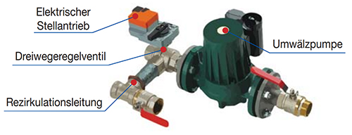 Die Wassermischeinheit besteht aus einer Umwälzpumpe, einem elektrisch betriebenen Dreiwegeregelventil für die Regulierung des Durchsatzes des Wärmeträgermediums und einer Rezirkulationsleitung. Die Umwälzpumpe dient der permanenten Zirkulation des Wärmeträgermediums durch Wasserheiz- und Wasserkühlspiralen. Die Wasserpumpenlager werden mit dem Wärmeträgermedium geschmiert. Die einphasigen Umwälzpumpen bedürfen keines Überlastungsschutzes, die dreiphasigen Umwälzpumpen müssen mit einem externen Überlastungsschutz ausgestattet werden. Der elektrische Stellantrieb des Dreiwegeregelventils wird über das 0-10 V Signal aus einem Steuersystem angesteuert. Die Wassermischeinheit ist für den Einsatz bei einem Betriebsdruck von 10 bar des Wärmeträgermediums im System ausgelegt. |