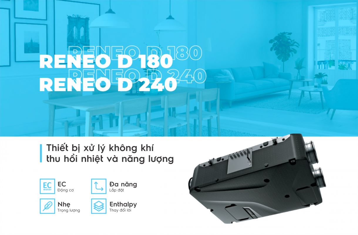 - Các thiết bị Reneo D được trang bị van bypass, có thể mở ra nếu cần làm mát khu vực được thông gió bằng không khí hút vào mát.
