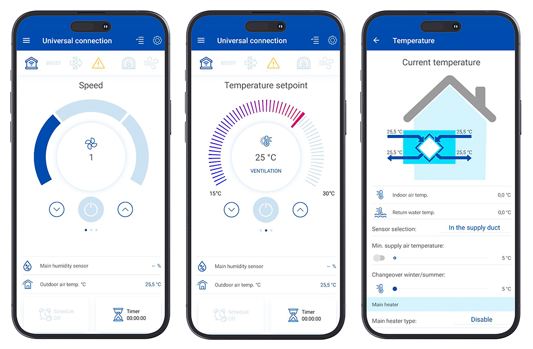 Reneo – không chỉ là hệ thống thông gió, mà còn là một trạm điều khiển khí hậu thực thụ ngay trong nhà bạn. Với bộ điều khiển S21, bạn có thể điều khiển tất cả các chức năng và thông số thông qua ứng dụng di động (bộ điều khiển không được bao gồm trong bộ sản phẩm).