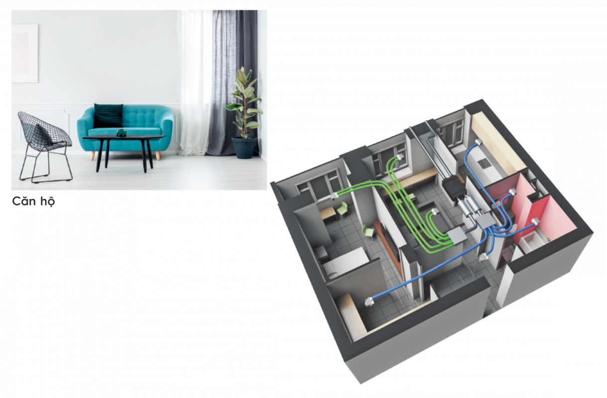 - Hệ thống điều hòa không khí dùng cho việc thông gió cấp và hút khí hiệu quả trong các căn hộ, nhà ở, biệt thự và các công trình khác.