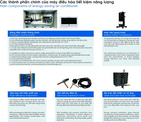 Các thành phần chính và chức năng vận hành của máy điều hòa không khí tiết kiệm năng lượng: